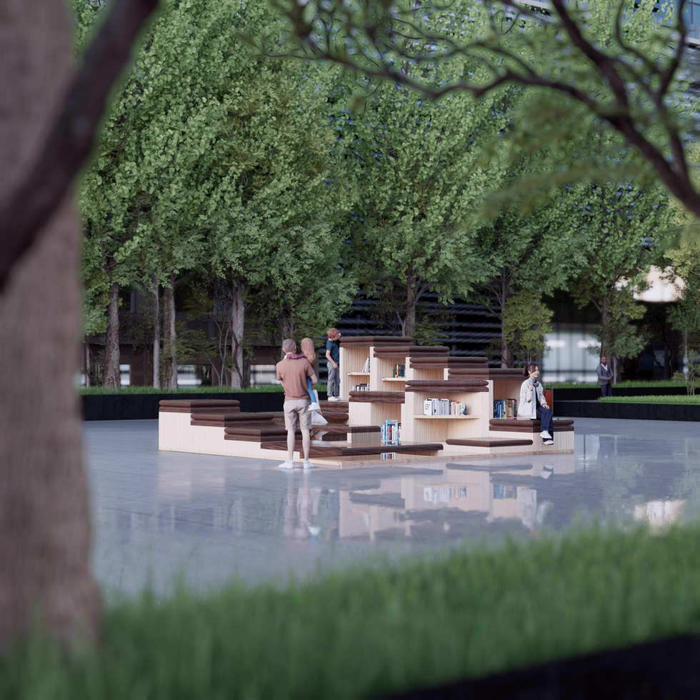 The Dialogue Box is a compact 5x5 m modular timber structure designed to accommodate both solitude and social interaction. Its stepped design creates a layered space - part reading nook, part gathering area, and part micro-library.